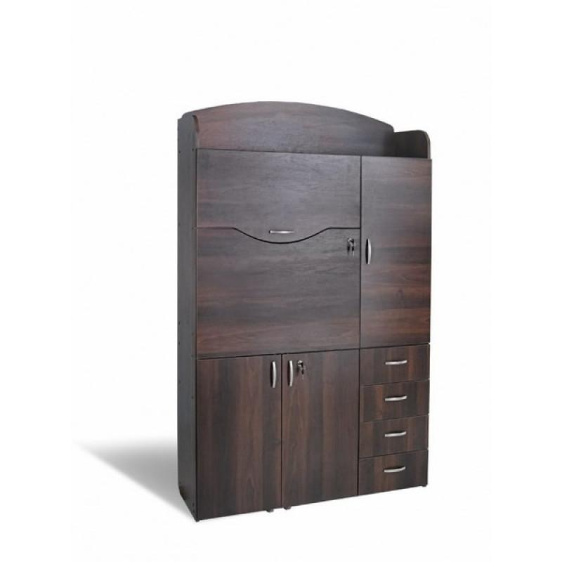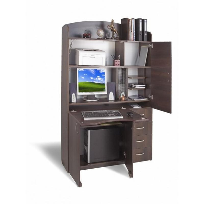 Компьютерный стол-бюро "Б-3" Престиж производителя Тиса-мебель - это именно то, что нужно подростку или школьнику младших классов. Не занимает много места, предусмотрено место для системного блока. Стол можно скрывать за дверками, тогда будет только бюро, а при необходимости получаем полноценное рабочее место с подставкой под монитор, полкой для дисков. Также есть четыре выдвижных ящика, небольшие ниши для документов. Производитель предлагает большой выбор цветовых решений.