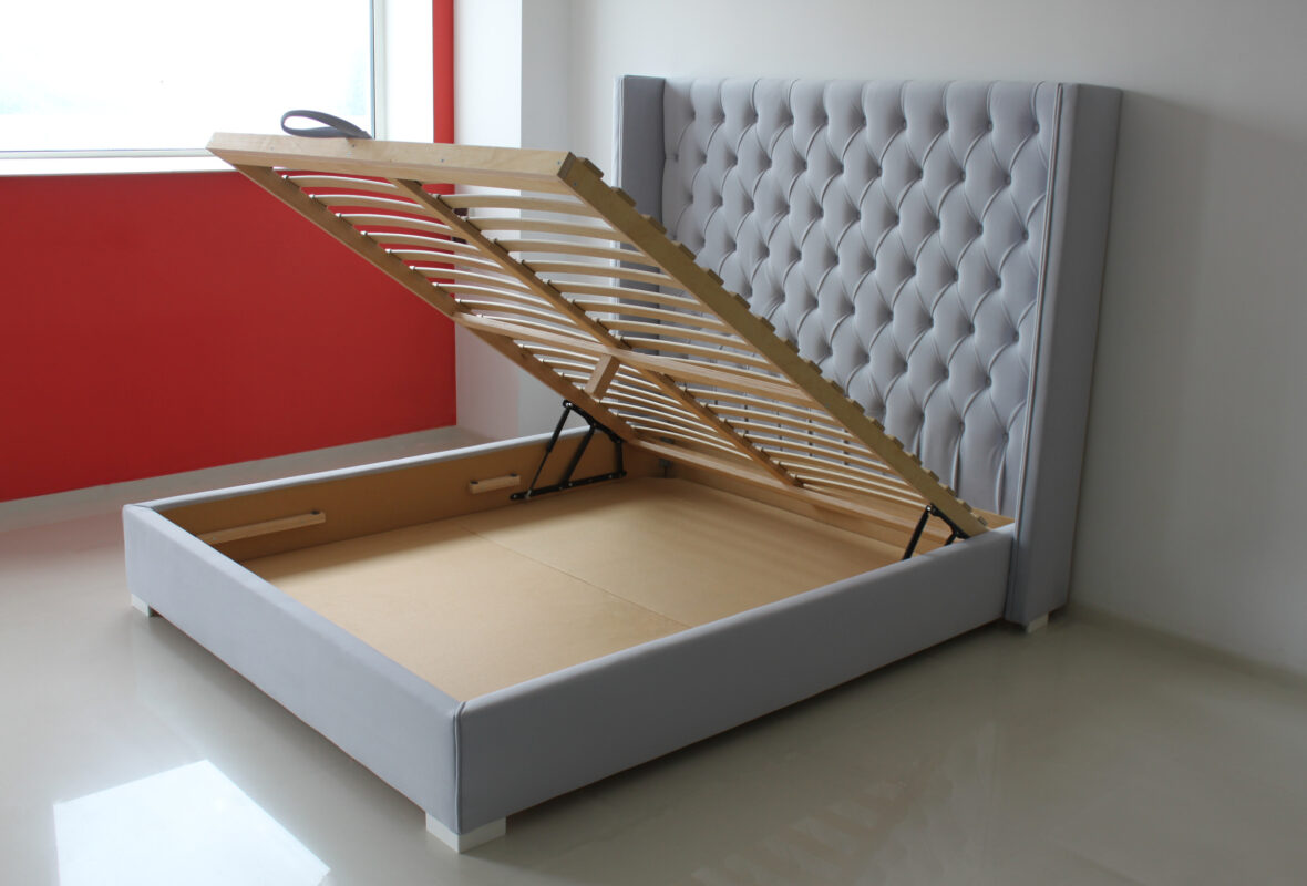 Можно заказать в любом цвете и материалах, а также доукомплектовать кровать дополнительной нишей для белья и подьемным механизмом.
