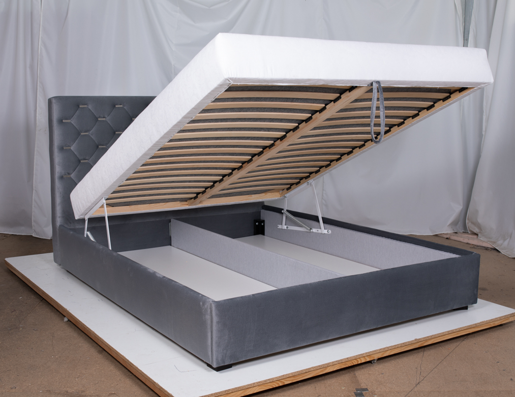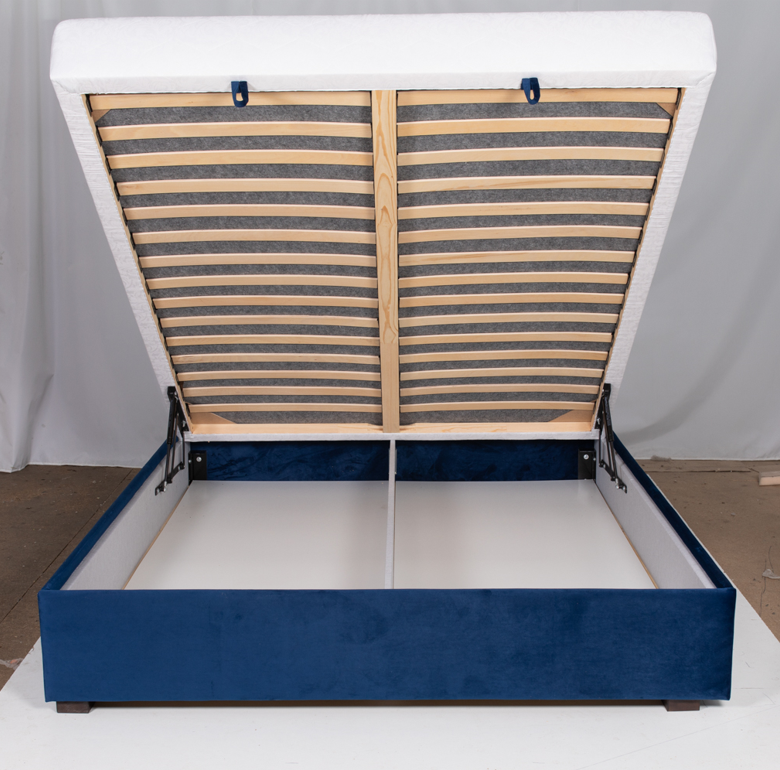 Кровать Ника №3 комплектуется подъемным каркасом под матрас с буковыми ламельным. Газовые подъемники. Ящик для белья. Без матраса!