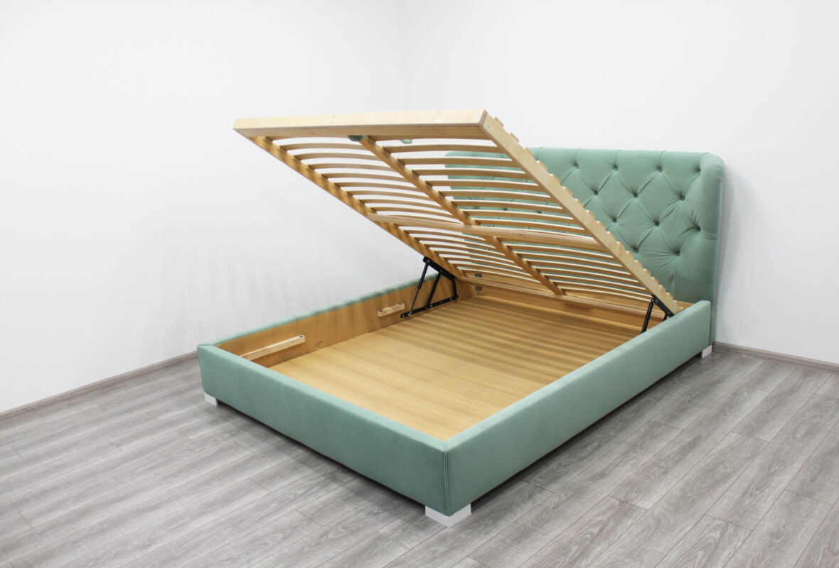 Можна замовити у будь-якому кольорі та матеріалах, а також доукомплектувати ліжко додатковою нішою для білизни та підйомним механізмом.