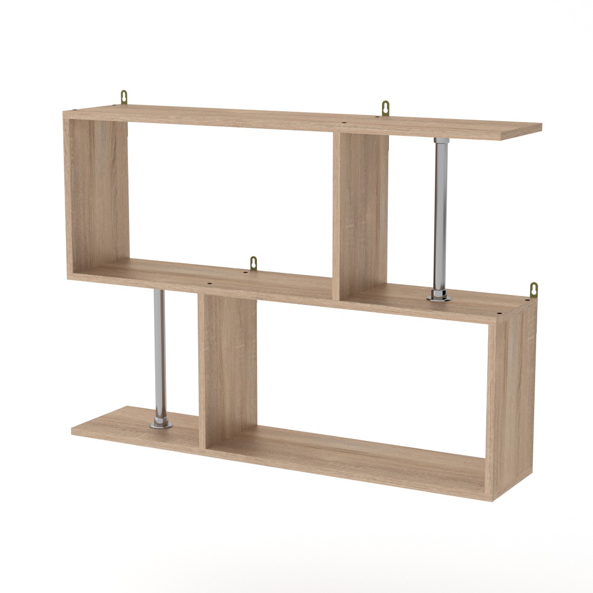 Настенная полка П-9 производителя Компанит имеет оригинальный дизайн, который подчёркивают необычная форма и металлические вставки.