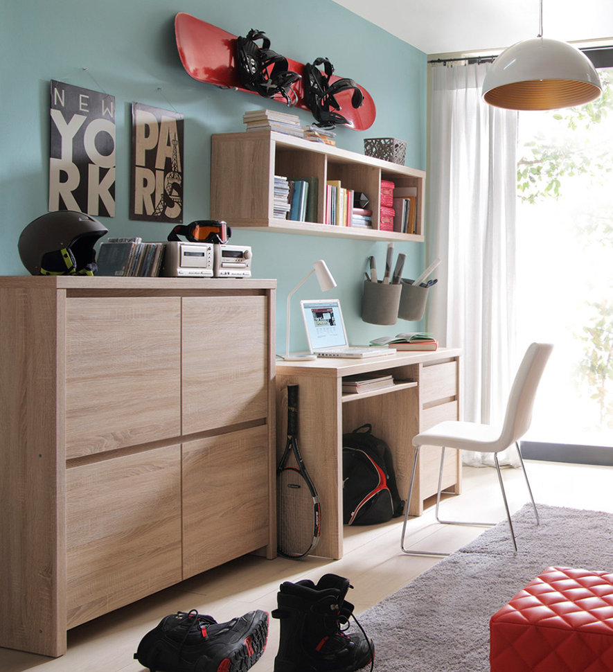 Мебель Каспиан представлена в модном цвете дуб сонома и дуб милано темный с ярко выраженной текстурой древесного рисунка. Характеризуется простыми геометрическими формами и оригинальными фасадами без ручек.