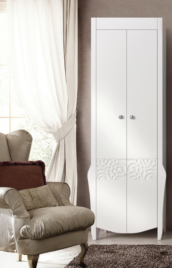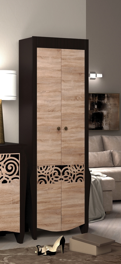 Шкаф Гефест Гефест Мастер Форм прекрасно дополнит интерьер гостиной, спальни, детской и прихожей. Шкаф превосходно сочетает в себе компактность, стильный дизайн и высокую вместительность и имеет две дверки, внутренне пространство содержит две полки и тремпель для верхней одежды. Вместительный, просторный шкаф позволит вам разместить верхнюю одежду и не только. Мебель Гефест Мастер Форм - роскошная коллекция с особым шармом красоты и роскоши от украинского производителя Мастер Форм для обустройства интерьера гостиной, спальни, детской комнаты и даже прихожей. Корпус изготавливается из высококачественной ДСП, фасады из МДФ. Изюминкой коллекции Гефест Мастер Форм является - волнистые формы; интересное сочетание; фасады с объемной фрезеровкой; металлические миниатюрные изысканные ручки цвета бронза и хром; фигурные ножки; фирменные петли обеспечивающие мягкое и бесшумное закрытие дверей, выдвижные ящики оборудованы телескопическими направляющими. Все элементы коллекции можно свободно комбинировать по своему усмотрению, переставлять, менять местами, приобретать дополнительные предметы по необходимости для обустройства всего дома в едином стиле. Мебель Гефест Мастер Форм выгодно вписывается в любой интерьер и способна стать изюминкой вашего дома.