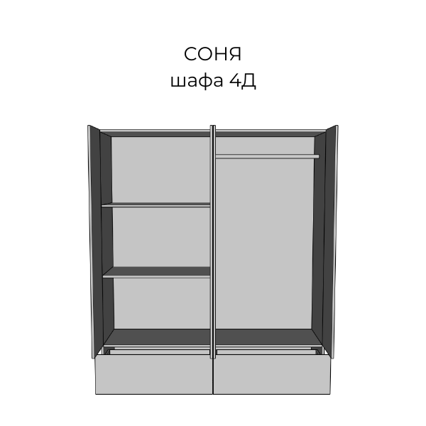 Чотирьохдверна шафа Соня є функціональним та оригінальним елементом спального гарнітура Соня.