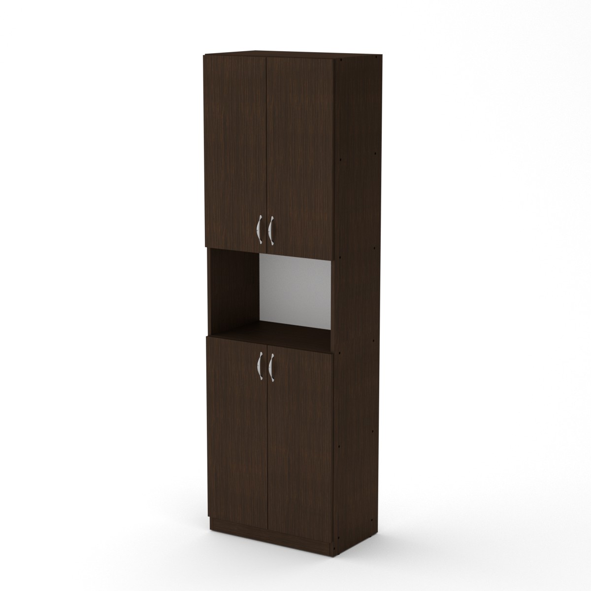 Универсальный шкаф КШ-5 апроизводителя Компанит - это шкаф закрытого типа, лучше всего подходящий для офиса. Шкаф состоит из двух отделов за думя распашными дверками с полками и одной открытой ниши посередине. Шкаф может быть использован для хранения книг, документов и других вещей.