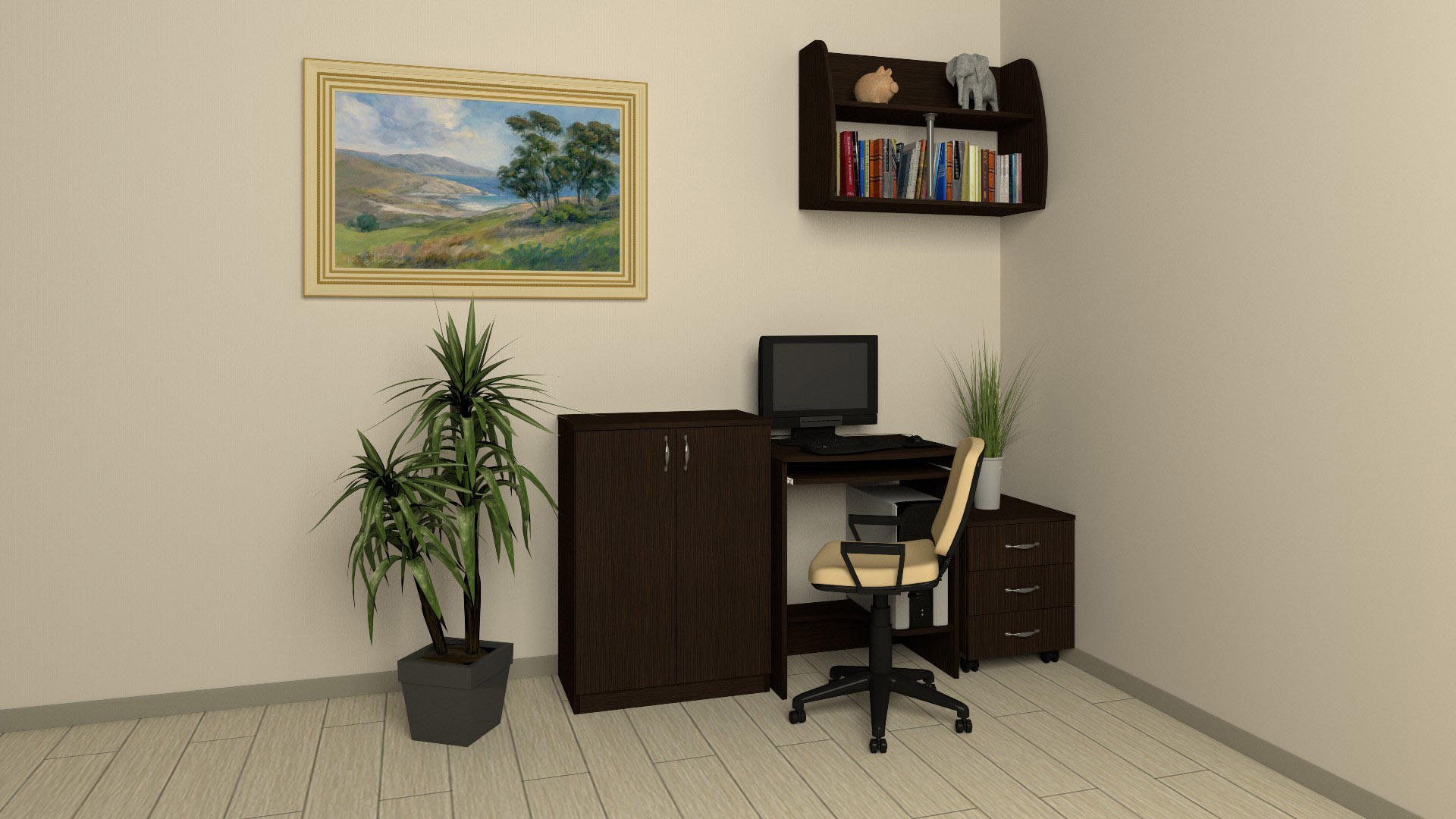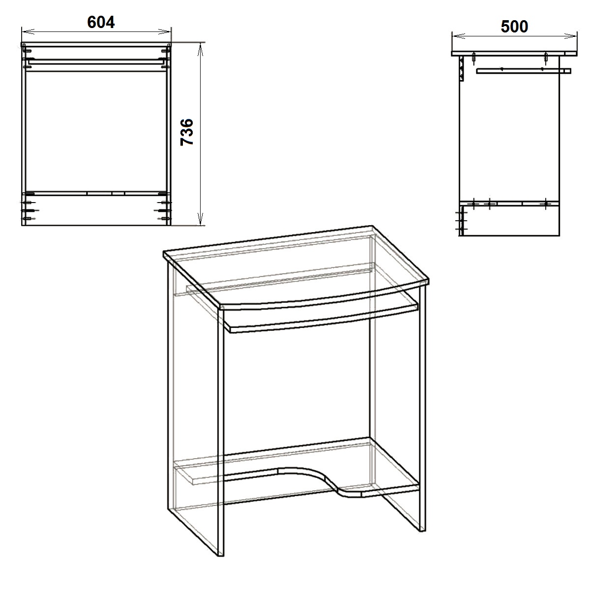 Компьютерный стол СКМ-13 мини производителя Компанит - компактная и лаконичная модель, состоящая из полки внизу, на которой можно разместить системный блок и выканой панели под клавиатуру.