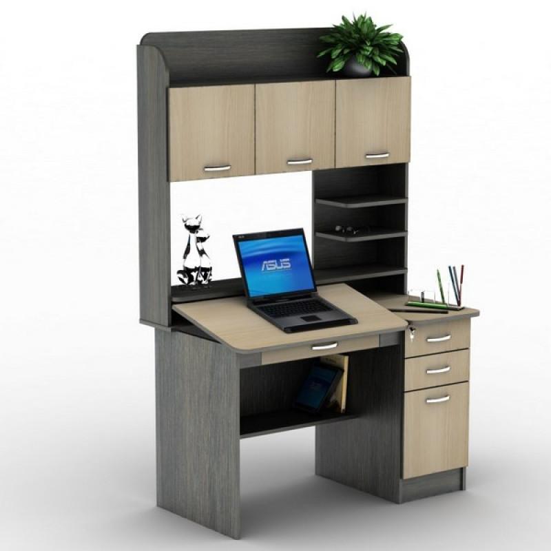 Компьютерный стол "СУ-11" Универсал производителя Тиса-мебель - отличное решение как для комнаты подростка, так и для офиса. Несмотря на свои небольшие габаритные размеры, стол "СУ-11" обладает всеми необходимыми функциями. Предусмотрена тумба для документов и канцтоваров, которая состоит из двух выдвижных ящиков и одного закрытого отдела с полочками. Под столешницей - небольшой выдвижной ящик, который удобно использовать для ручек, карандашей. Они всегда будут под рукой. Надстройка над столом представлена тремя закрытыми отделами на откидных дверках открытыми полочками.