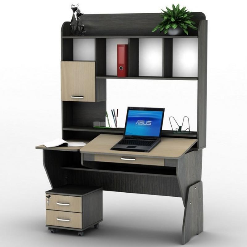 Компьютерный стол СУ-23 Универсал от производителя Тиса-мебель - это модель среднего размера, которая будет актуальной и дома, и в офисе. Отличительной особенностью есть возможность регулировать угол наклона столешницы и высоту столешницы за счет установки ножек на необходимой высоте. Предусмотрены два выдвижных ящика, что очень удобно и функционально. На столешнице есть небольшая надстройка с полочками для документов и одним однодверным отделом.