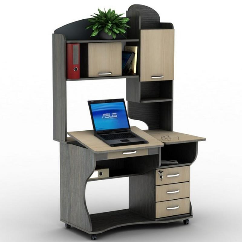 Компьютерный стол СУ-7К Универсал от производителя Тиса-мебель - лаконичная модель, которая актуальной будет как в офисе, так и дома. Несмотря на небольшие габаритные размеры, стол достаточно функциональный и вместительный. Отличительной особенностью данной модели есть возможность регулировать угол наклона столешницы, что очень удобно при работе за ноубуком. Предусмотрен тумба с тремя выдвижными ящиками для документов, книг и ящик поменьше - для ручек и карандашей. Надстройка представлена двумя закрытыми однодверными отделами и открытыми полочками. Благодаря наличию мебельных колесиков, стол легко передвигать в помещении. Производитель предлагает большой выбор цветовых решений.