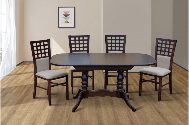 Каркас стола - массив сосны. Столеница - шпонированный дубом МДФ.