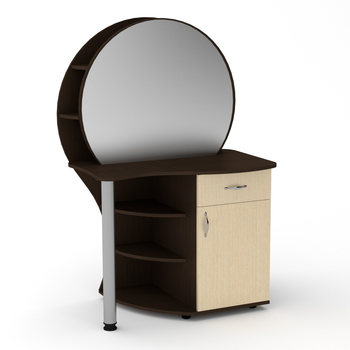 Туалетный столик Трюмо-3 производителя Компанит имеет оригинальный и необычный дизайн с округлыми формами изделия.
