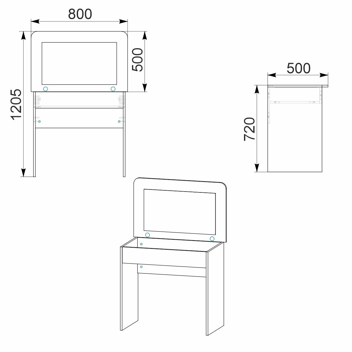 Туалетный столик Трюмо-7 производителя Компанит - компактная и функциональная модель, включающая в себя ящик, столик и зеркало.