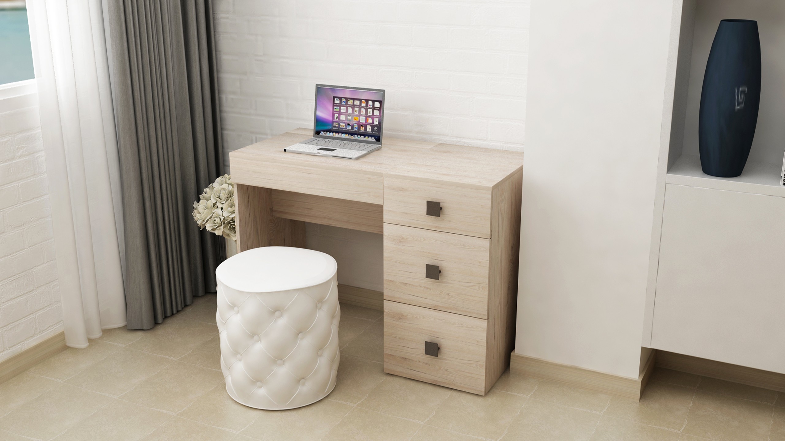 Трюмо 2 производителя Lion - идеальное решение для спальни. Удачный дизайн совмещает в себе туалетный столик и письменный стол, дополнит интеръер красотой и комфортом. Идеально будет для использовании в небольших помещениях благодаря своей многофункциональности. Зеркало расположено на внутренней стороне столешницы,опустив которую, получишь письменный стол. Предусмотрены три больших выдвижных ящика. Кроме мелких косметических средств, вы найдете место и для других домашних принадлежностей. На фасаде ручки в форме квадрата, что очень практично и необычно.