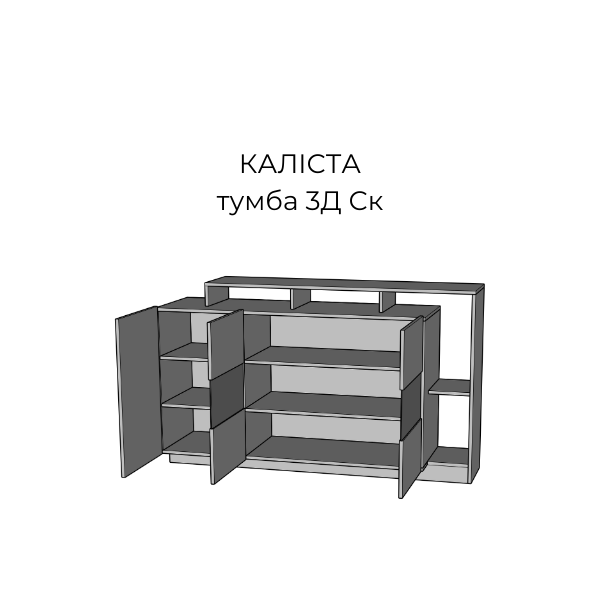 Тумба Калиста от мебельной компании Світ меблів - отличное решение для Вашей гостинной. Мебель выполнена в современном стиле без лишних деталей и имеет компактный вид. Прекрасно сочетается с другими элементами комплекта для гостинной Калиста. Мебель выполнена из высококачественного ламинированного ДСП.