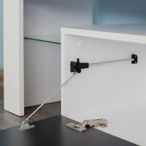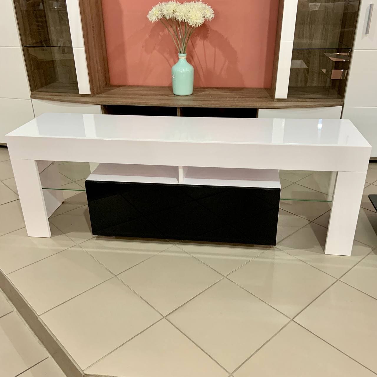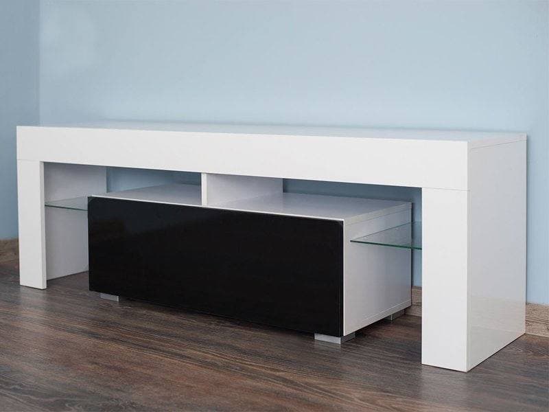 ТВ тумба Моника Cama- отличный предмет для обустройства современной гостиной. Тумба состоит из одного закрытого отделения с откидной дверцы, для хранения вещей и двух стеклянных полок. На широком основании оригинальной и стильной тумбы поместиться телевизор любой диагонали. Корпус и фасады выполнены из ДСП высокого качества в контрастном сочетании цветов "нимфея альба/черный глянец". Характерными особенностями ТВ тумбы являются элегантность, современный дизайн, минимальное декоративное оформление, интересное дизайнерское решение: отсутствие традиционных ручек, их роль выполняет торец фасада, надежная и практичная фурнитура обеспечивающая максимально комфортное использование. ТВ тумба гармонично сочетает в себе изысканность стиля и невероятную практичность и комфорт.