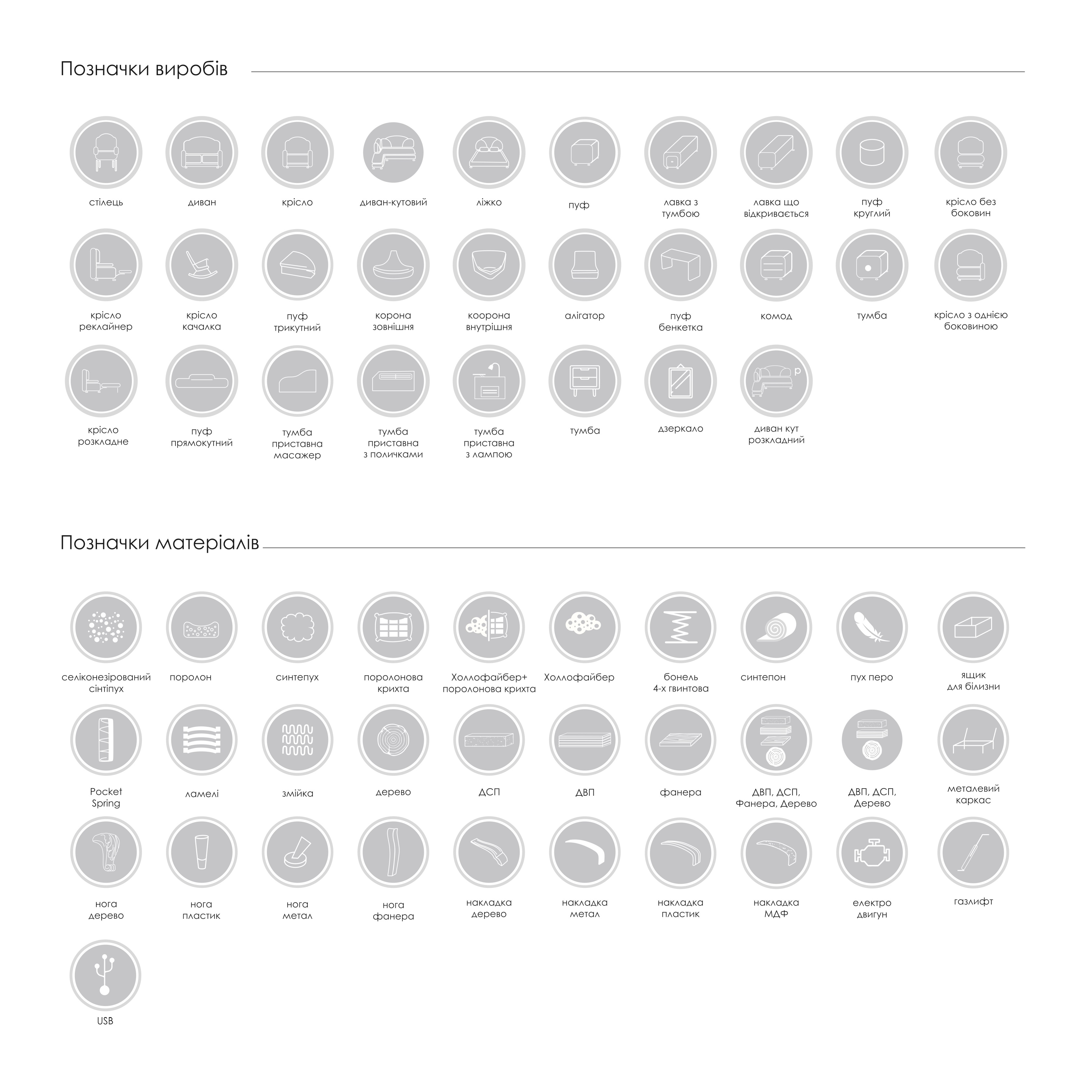 Можливий вибір кольорів та матеріалів оббивної тканини.