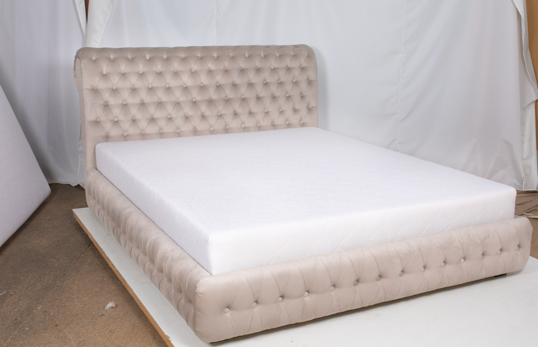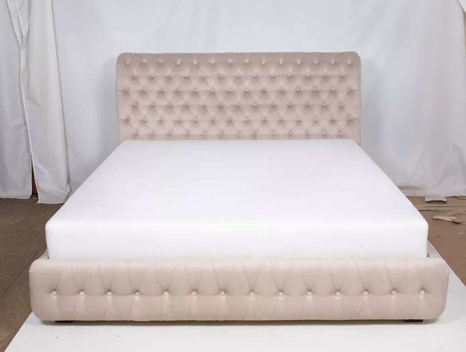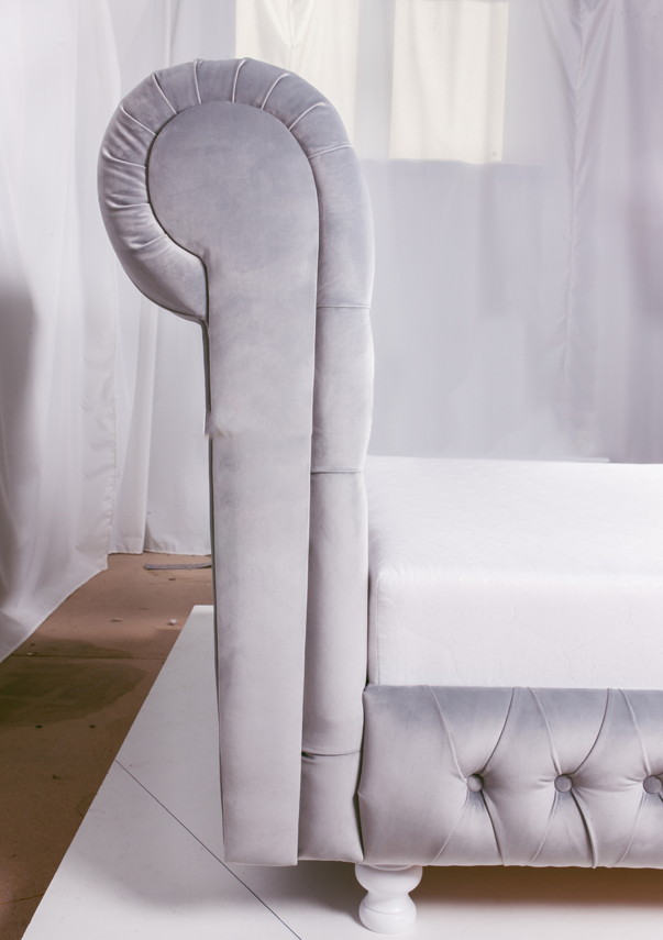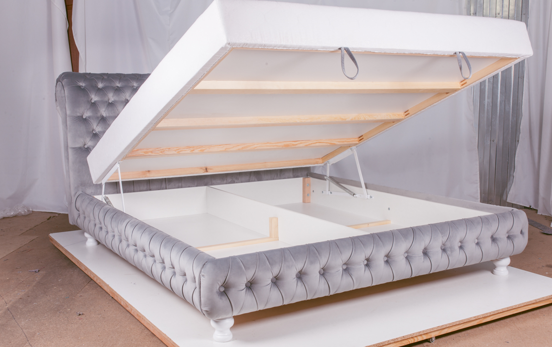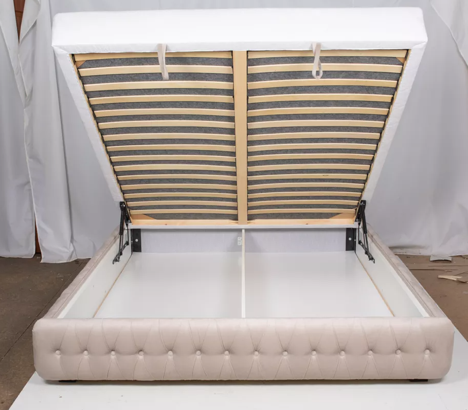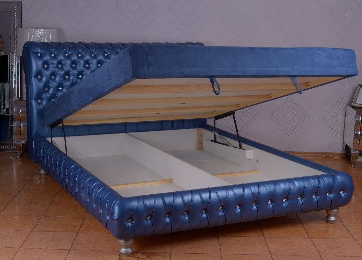 Виробник пропонує великий вибір категорій тканини. Особливістю даної моделі є наявність підйомного механізму, таким чином отримуємо величезний короб для білизни. Весь каркас і узголів'я обшито тканиною як ромбів, гудзики також обтягнуті тканиною.