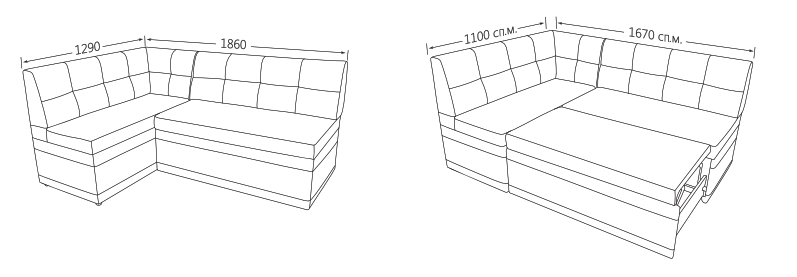 Кухонний куточок "Томас" виробника Nota – це незамінна частина обідньої зони на кухні. Виконаний із високоякісних матеріалів, прослужить вам довгу службу. Особливістю даної моделі є наявність спального місця, що дуже зручно та функціонально. Механізм розкладки – дельфін. Приємним бонусом даної моделі є наявність короба для зберігання в крісельній та кутовій частині.