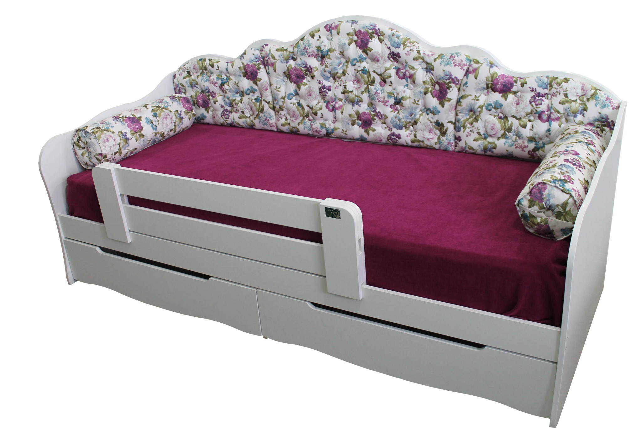 Дитяче ліжко "Л-6" із ящиками виробника Ліон - ідеальне рішення для кімнати школяра. Завдяки незвичайному дизайну підійде до будь-якого інтер'єру. Як підстава під матрац - ламелі, що сприятливо позначається на дитячий скелет, що росте, і служить профілактикою сколіозу. Спинка різьблена, обшита тканиною. З боків передбачені валики-подушки для зручності, тому що ліжко можна використовувати і як диван. Передбачено наявність двох містких ящиків, у яких можна зберігати постільну білизну та іграшки. Ліжко розроблене для дітей від 3х років, з урахуванням підвищеної безпеки, і буде комфортне дитині з погляду просторості та зручності, так само відповідати всім критеріям щодо функціональності, безпеки та екологічності, які пред'являють дбайливі батьки. До цієї моделі можна додати борт, якщо дитина ще маленька.