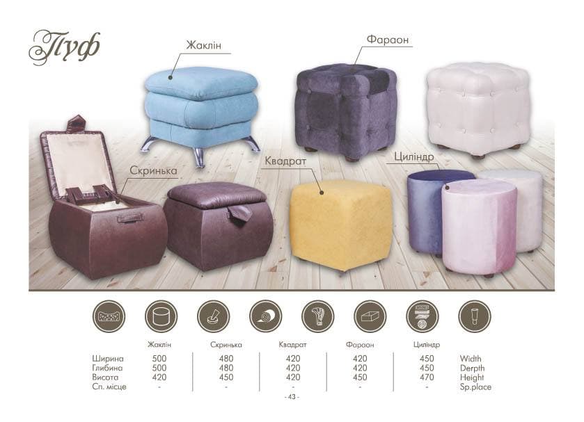 Пуф "Куб" виробника МКС - необхідний предмет меблів у кожному будинку. Його можна поставити у передпокої, завжди зручно присісти, взуючись. Також добре виглядатиме в інтер'єрі вітальні, шоурумів та салонів краси. Його легко переміщувати. Має вигляд куба. Оббивка може бути або з тканини, або шкірзмаму.