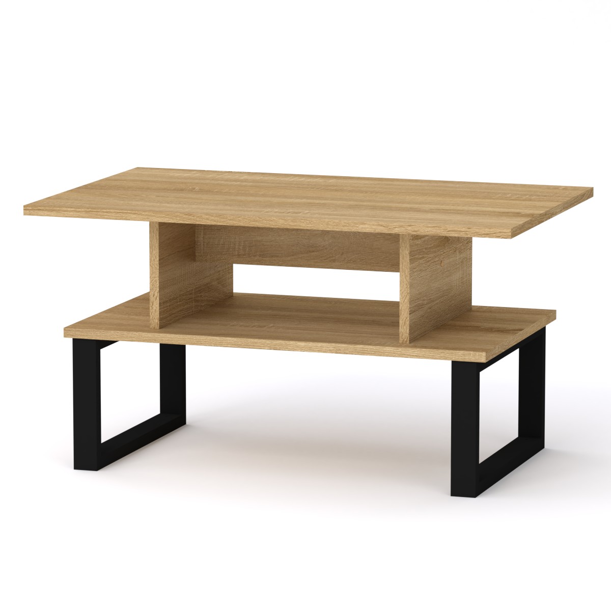 Стіл журнальний Лофт-2 від меблевої компанії Компаніт - відмінне рішення для Вашої вітальні. Меблі виконані в сучасному класичному стилі без зайвих деталей і мають компактний вигляд. Чудово поєднується з іншими елементами меблів. Меблі виконані з високоякісного ламінованого ДСП і представлені у великій різноманітності кольорів на будь-який смак.
