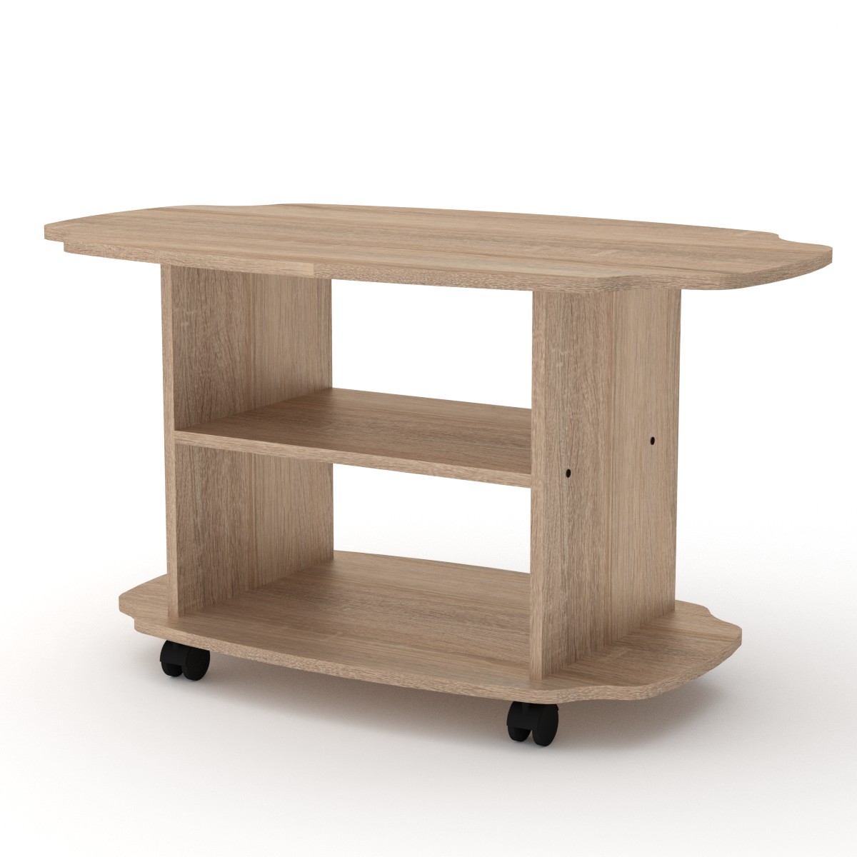 Журнальний стіл Твіст виробника Компаніт - оригінальна модель зі стільницею та основою фігурної форми та полицею посередині, розташованої між двома перегородками.