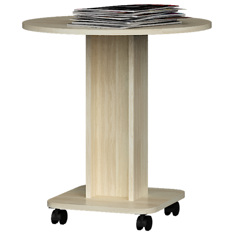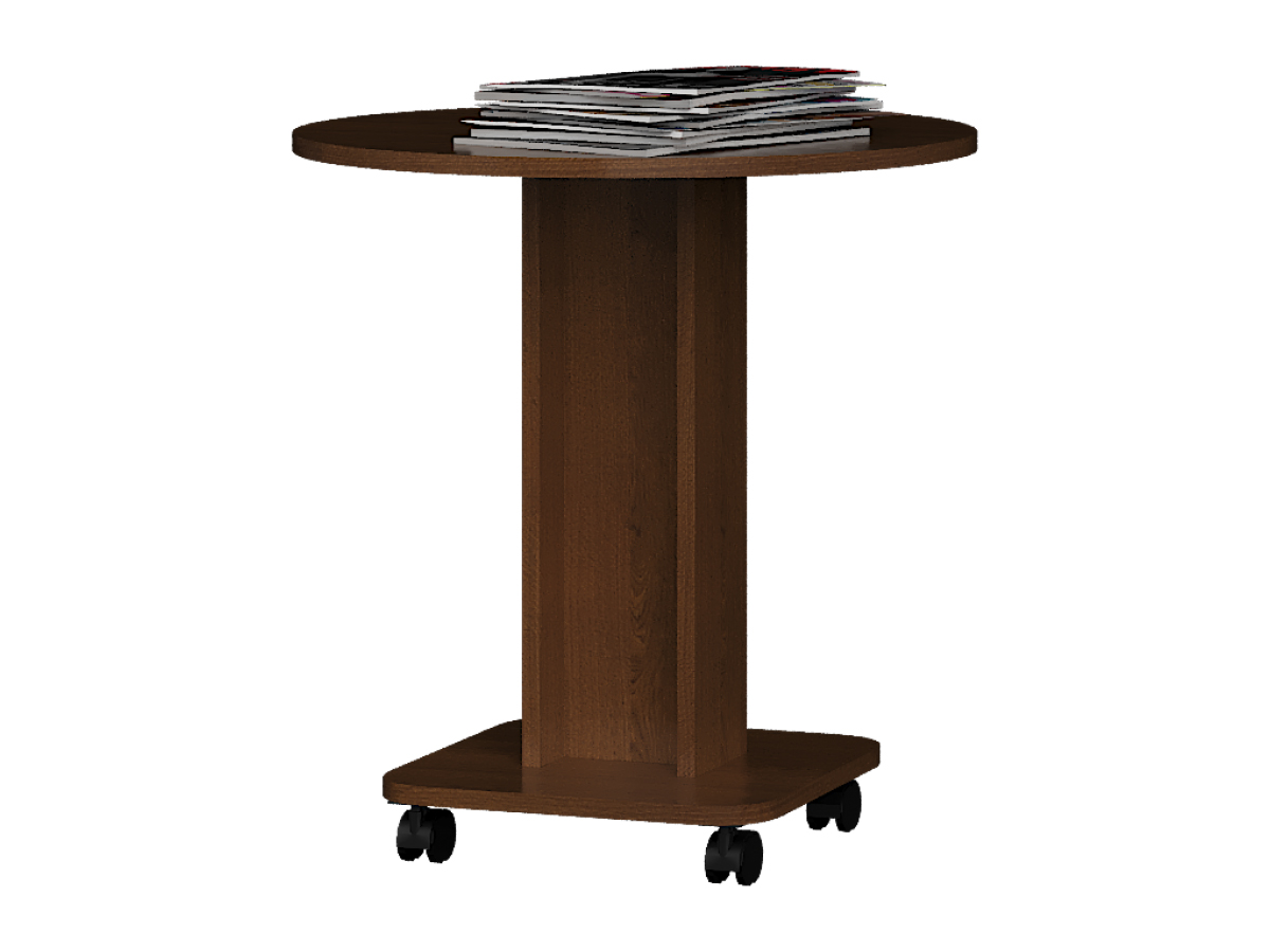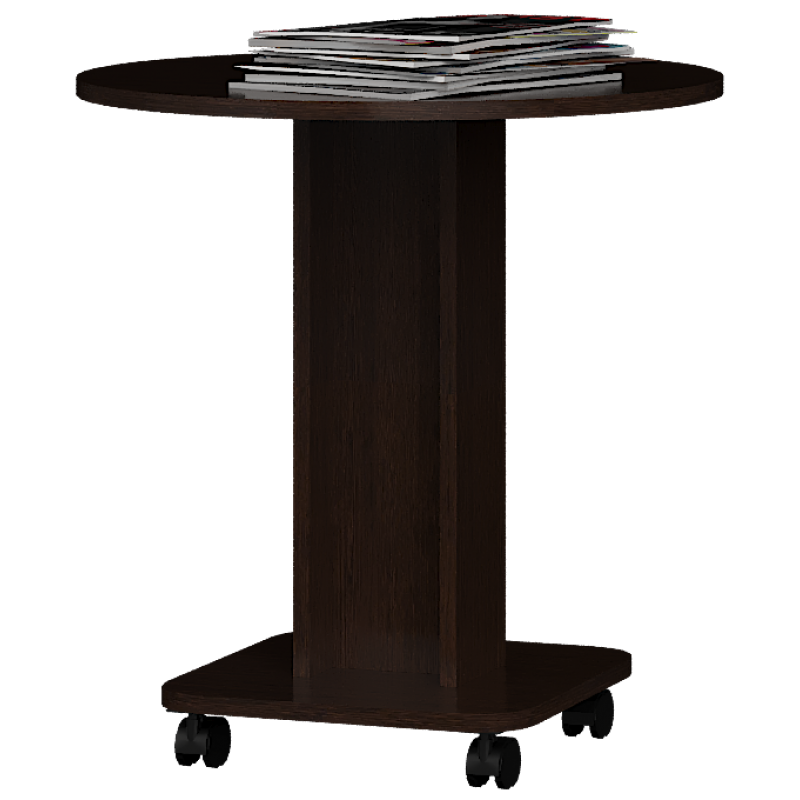 Журнальний стіл "Візит" виробника Еверест - чудове доповнення інтер'єру вашої вітальні. Також його можна використовувати у зоні відпочинку в офісах. Відмінною особливістю журнального столу є невелика висота, дуже зручно сидячи у кріслі або на дивані, бачити, що лежить на столі, поставити чашку, взяти газету чи журнал. Стільниця столика "Візит" має круглу форму, основа квадратна із закругленими кутами. Для зручності переміщення столика в приміщенні конструктори передбачили меблеві роликові опори.