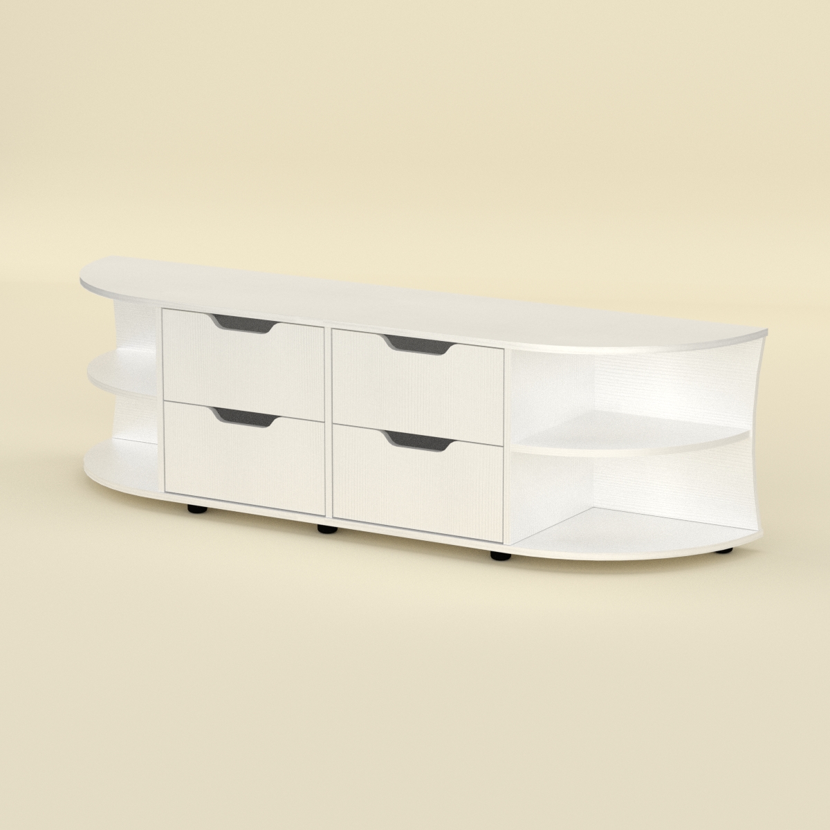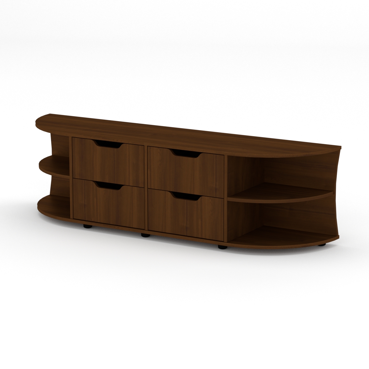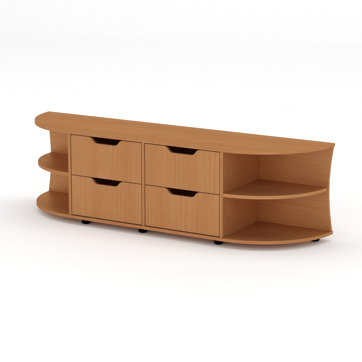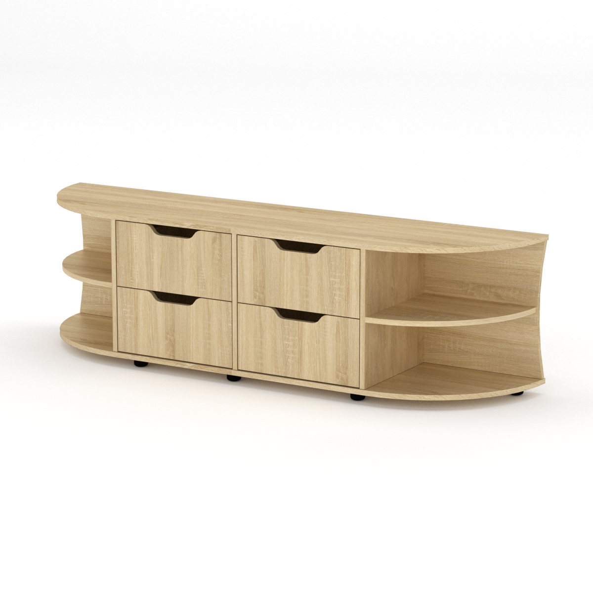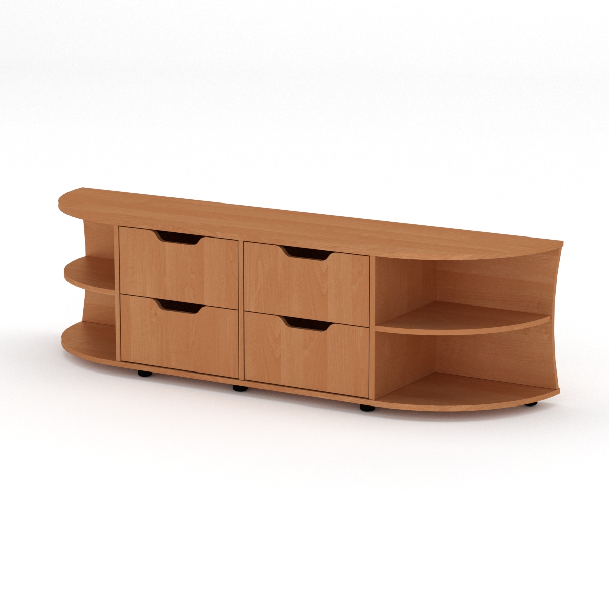 Тумба під ТВ Одеса виробника Компаніт - лаконічний та оригінальний варіант для доповнення інтер'єру вітальні. Тумба складається з чотирьох висувних ящиків та відкритих ніш.