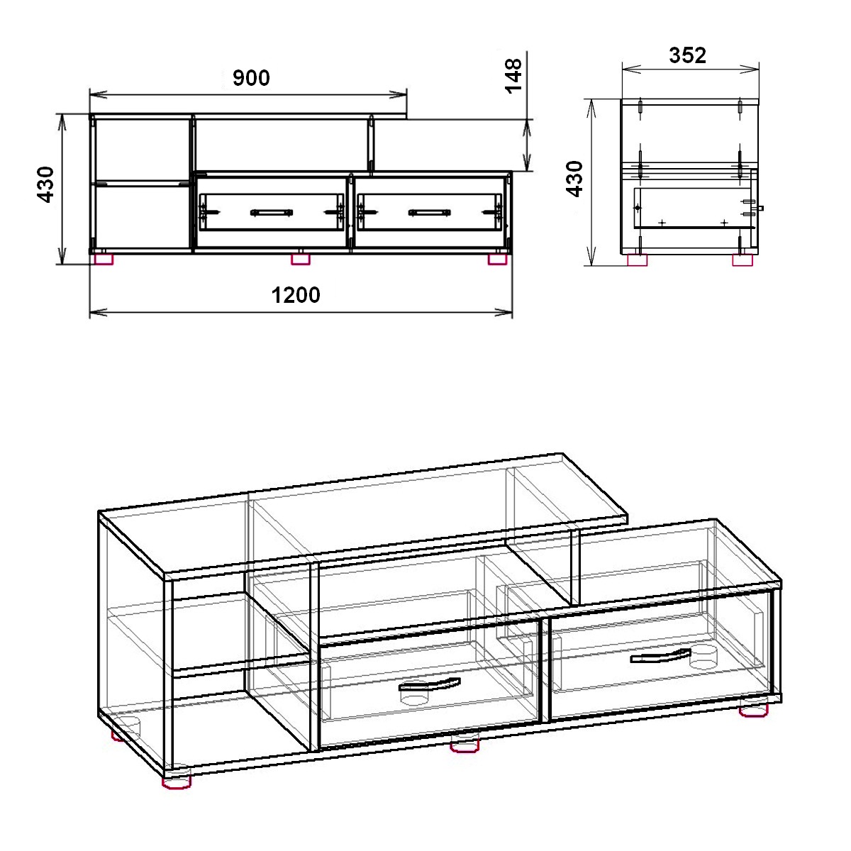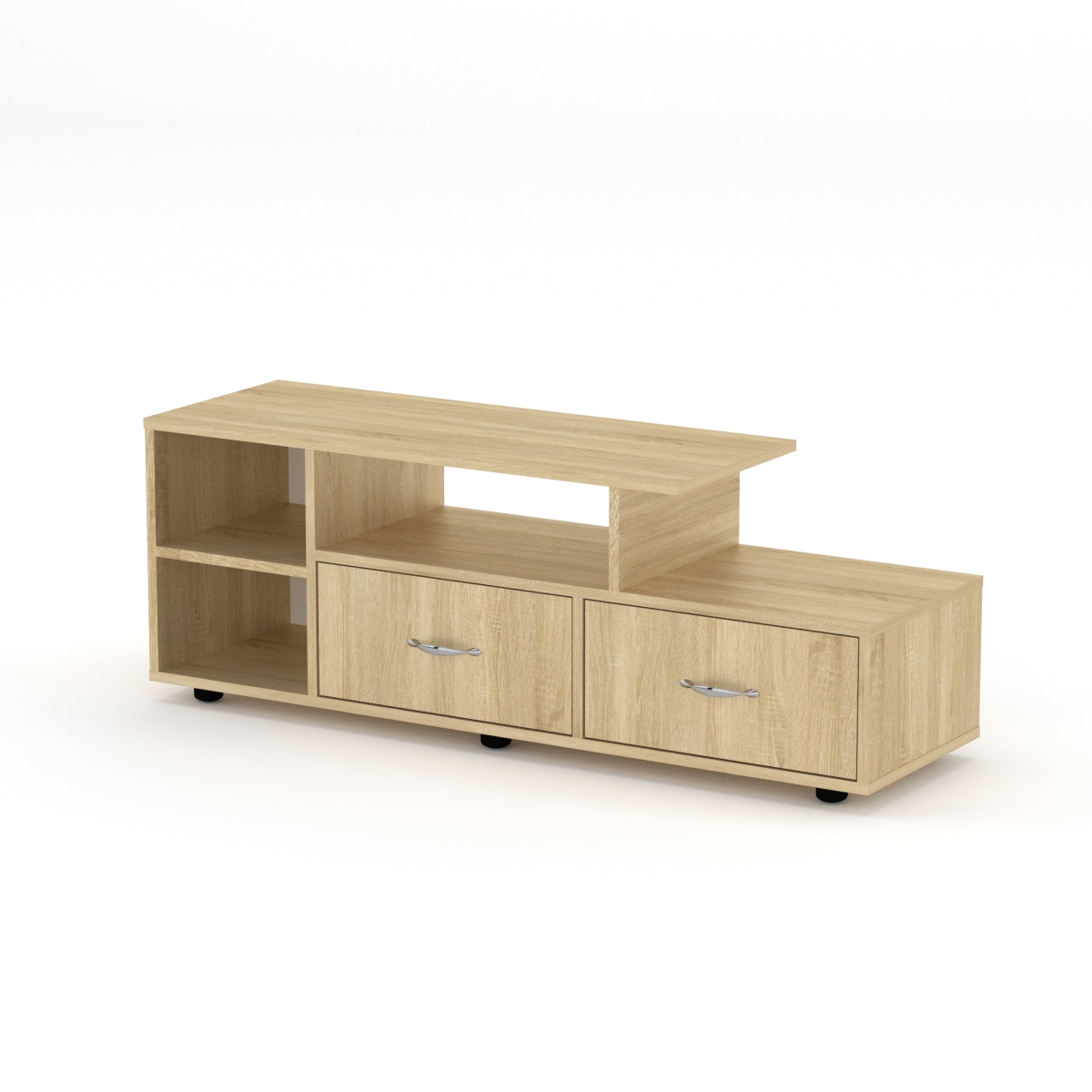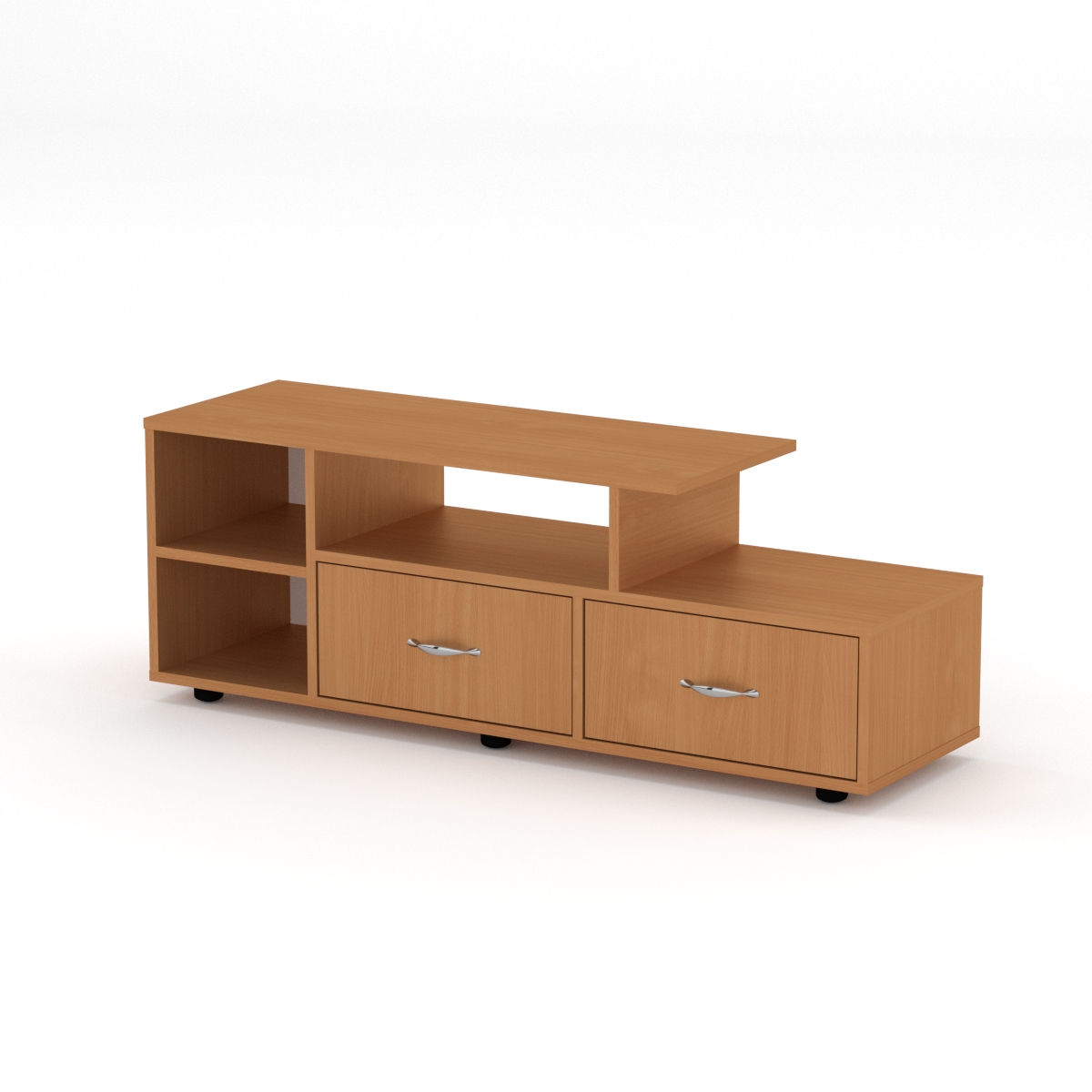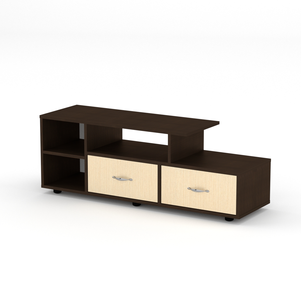 Тумба під ТВ Вінниця виробника Компаніт - оригінальне рішення для доповнення інтер'єру вітальні. Найкраще ця тумба підійде для плазмового телевізора з широкою діагоналлю, але можна розглядати інші варіанти. Особливістю виробу є два висувні ящики і дві відкритих ніші, а також більша ніша, в якій може бути додатково розміщена аудіо-відео техніка.