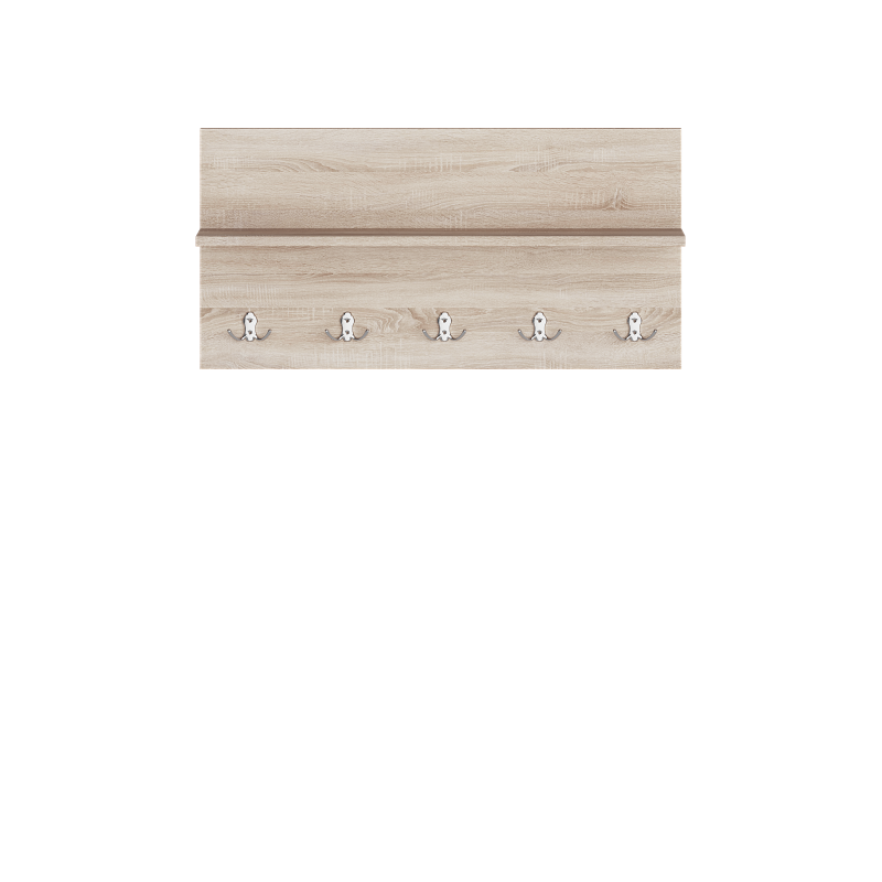 Вішалка Щит 800 Соната Української фабрики ЕВЕРЕСТ це дивовижний приклад доступних, трендових меблів, які можуть бути не тільки красивими і привабливими, але й високоякісними , практичними, довговічними, ергономічними і функціональними. Приємна фактура меблів та приємне контрастне поєднання відтінків, допоможуть освіжити приміщення та звичний інтер'єр, кімната перетвориться, стане більш затишною, приємною та комфортною. Вішалка Щит Соната оснащена полицею для головних уборів, відкритою вішалкою, з трьома подвійними міцними гачками.