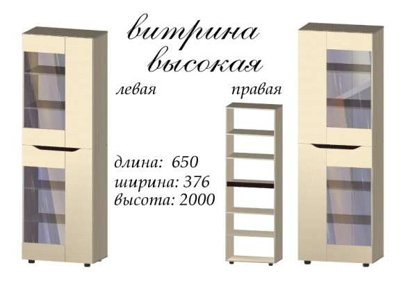 Витрина "Аякс высокая" от производителя Мастер-Форм имеет корпус из ДСП, который по периметру защищен пластиковой кромкой. Данная модель может быть выполнена в левостороннем и правостороннем вариантах. Фасады изделия состоят из прочного стекла и ДСП. Внутри витрина укомплектована полками, на которые вы можете разместить любимый сервиз или домашнюю библиотеку. Опоры изделия регулируются по высоте.